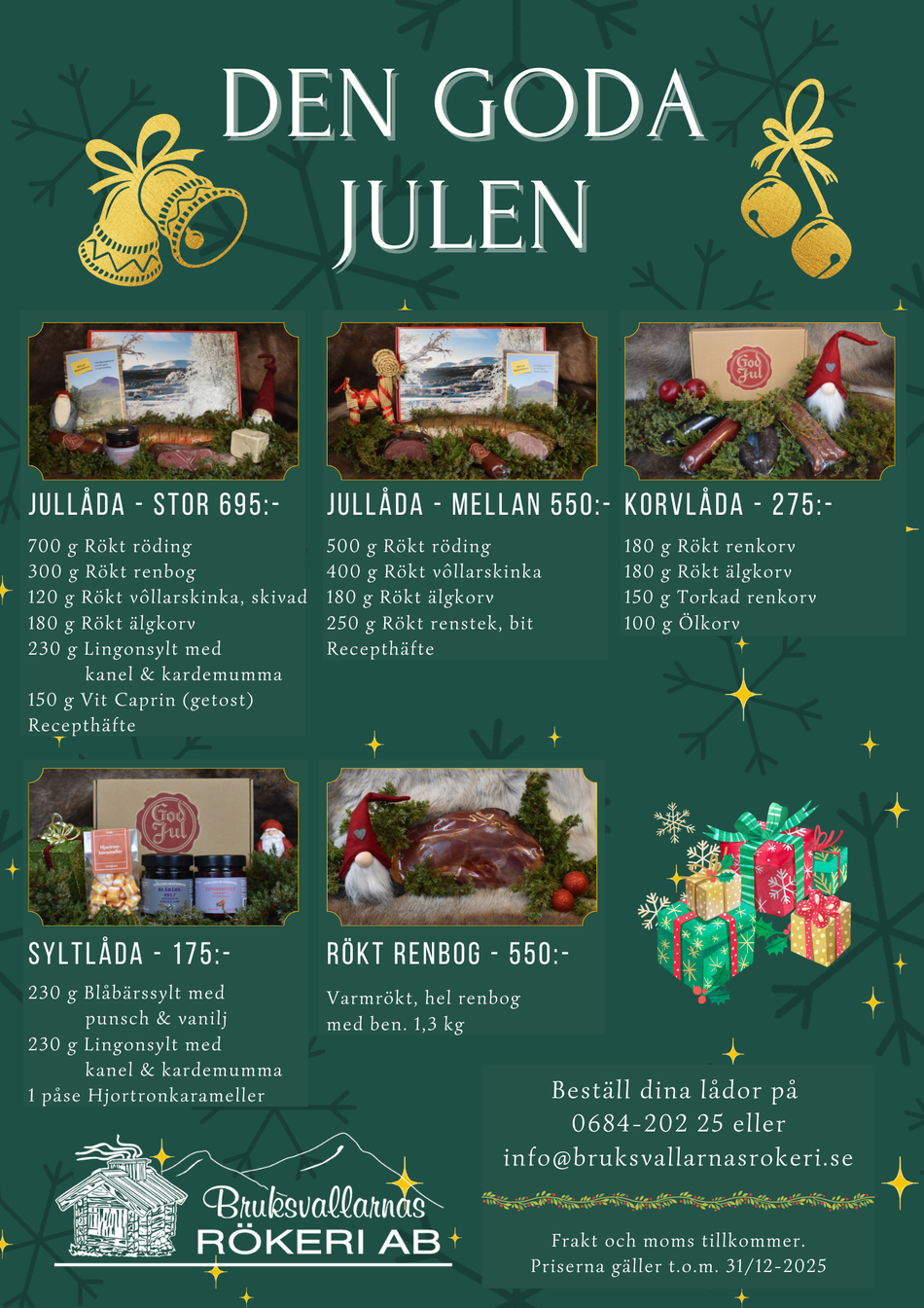 Ring 0684-202 25 eller mejla till info@bruksvallarnasrokeri.se